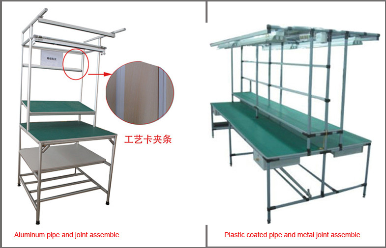 細い管システム管棚ワークステーションはアルミニウム管棚システム及びプラスチック上塗を施してある管および金属の接合箇所によって集まっています
